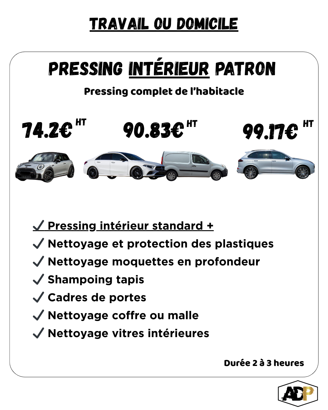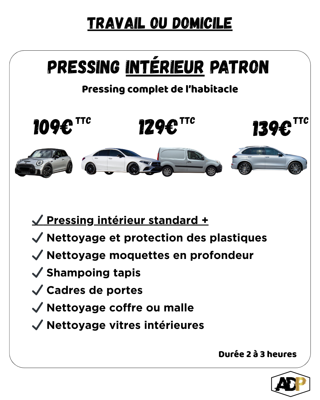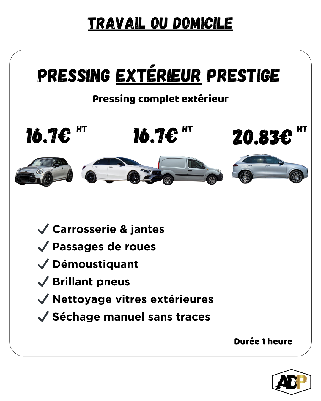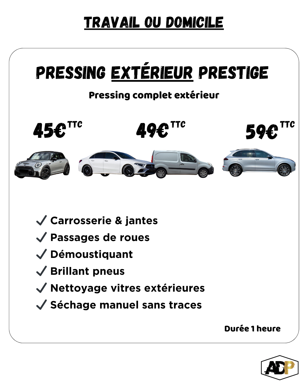 40€ TTC – 33.3€ HT au karcher (30 min)