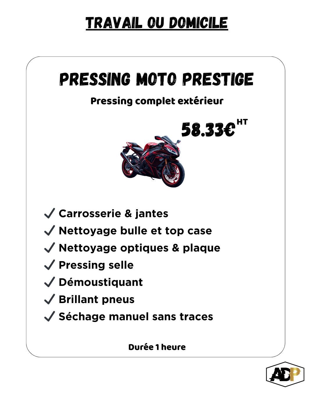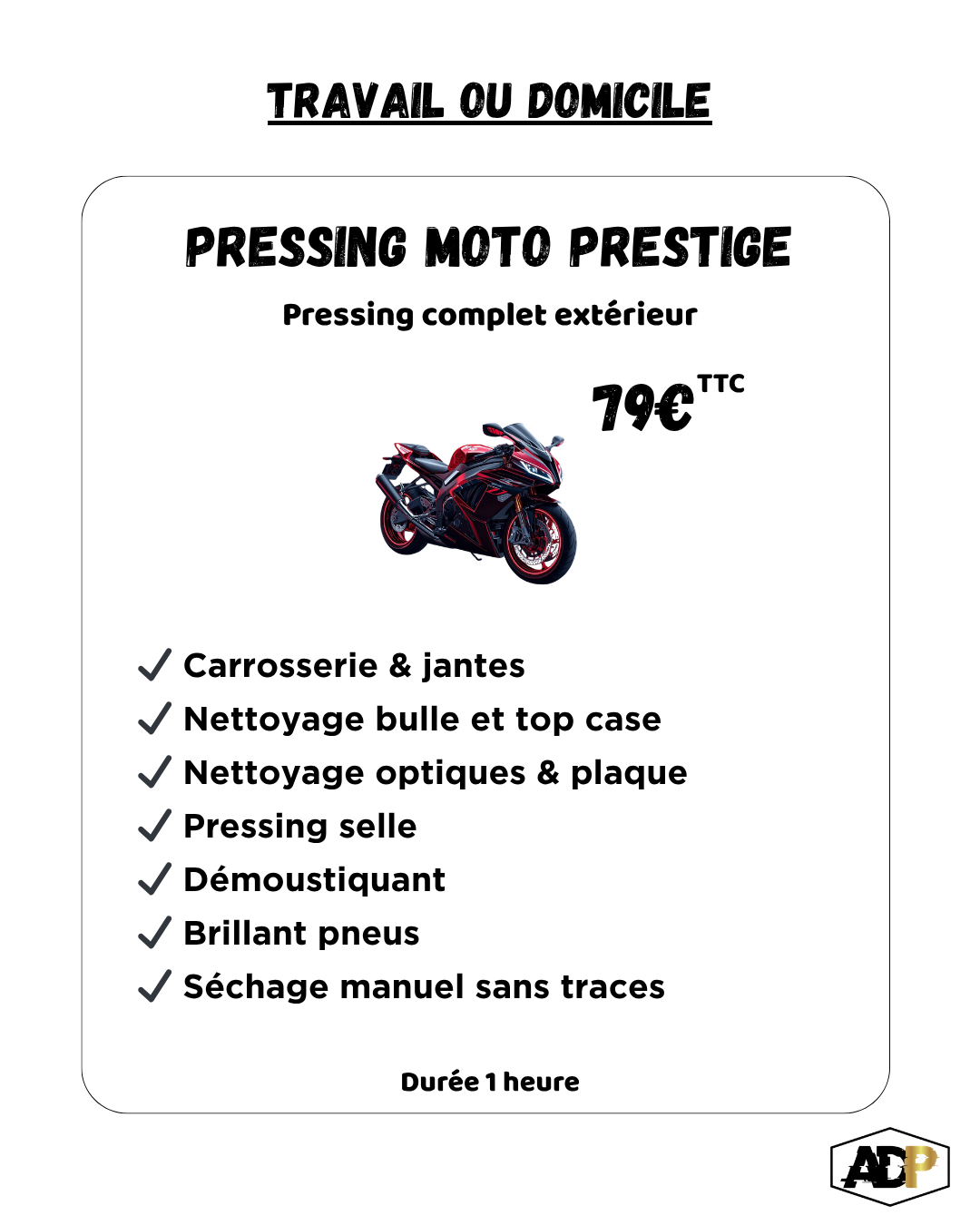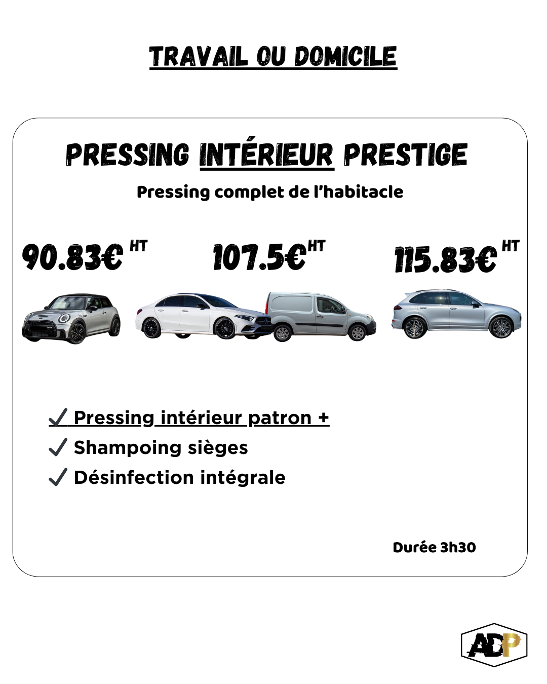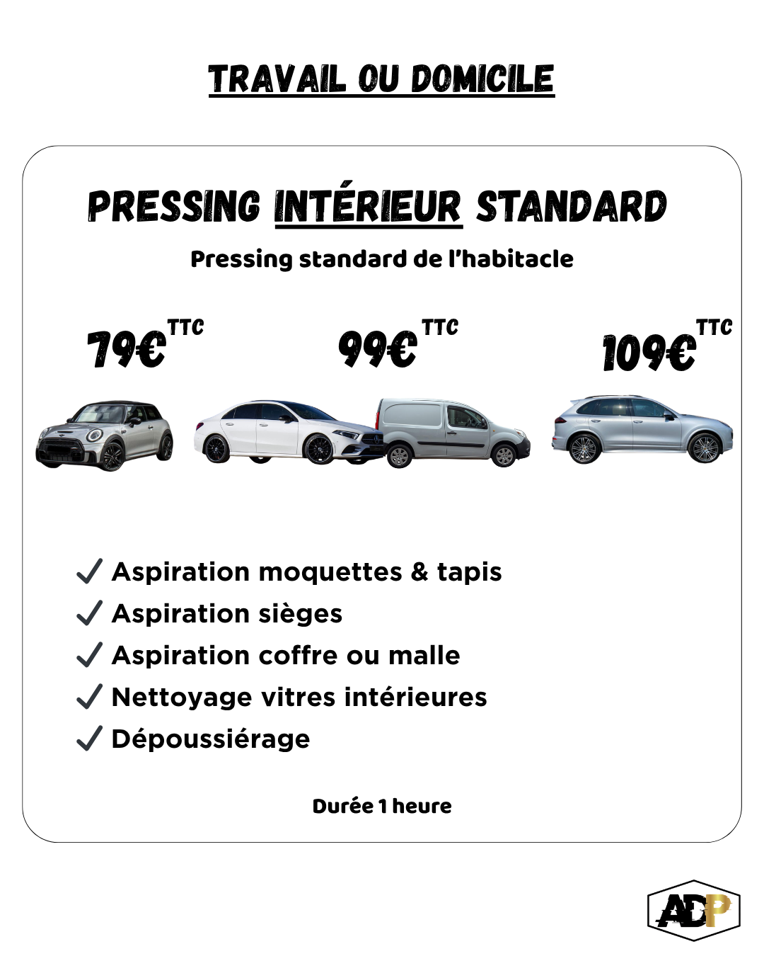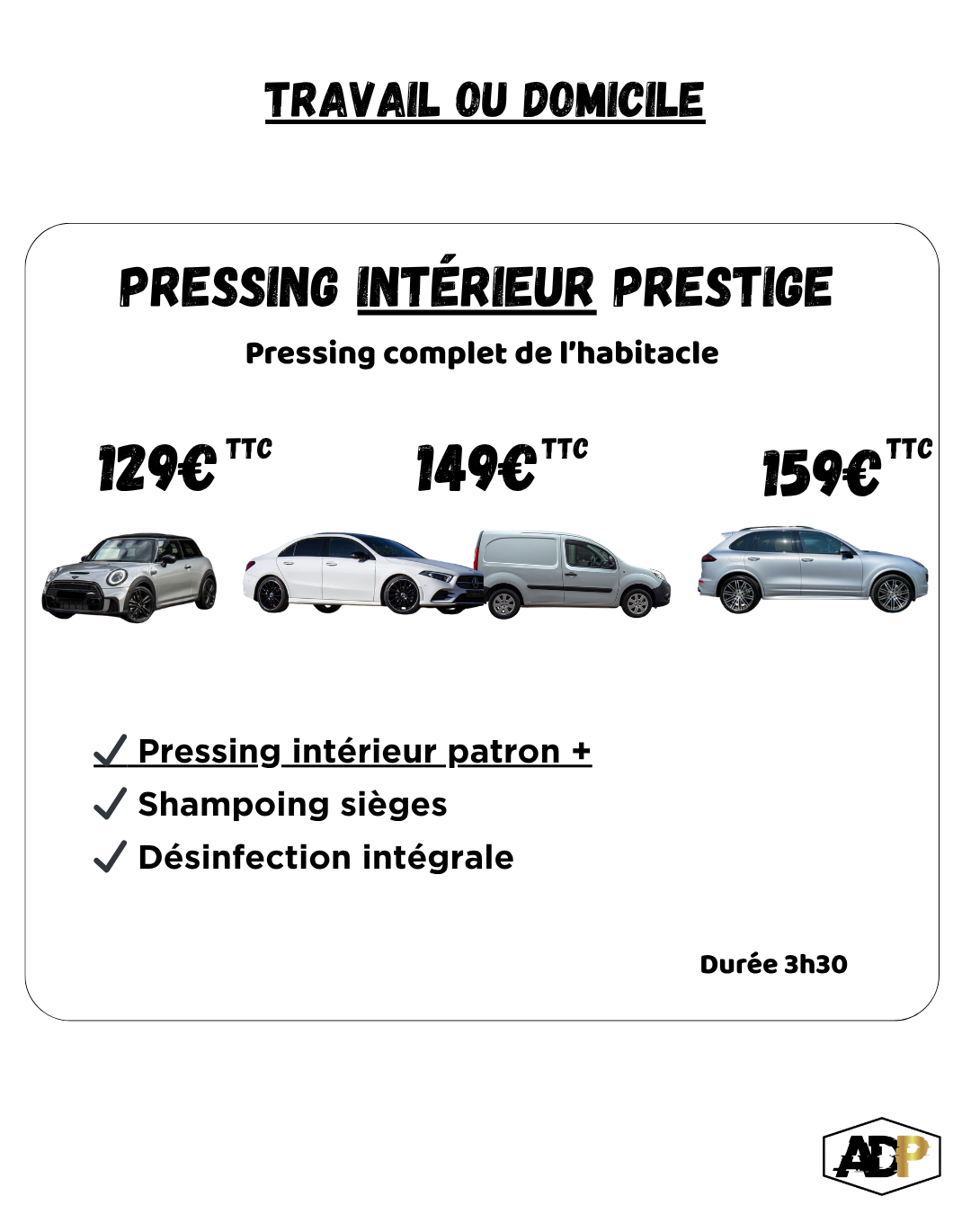 40€ TTC – 33.3€ HT au karcher (30 min)
